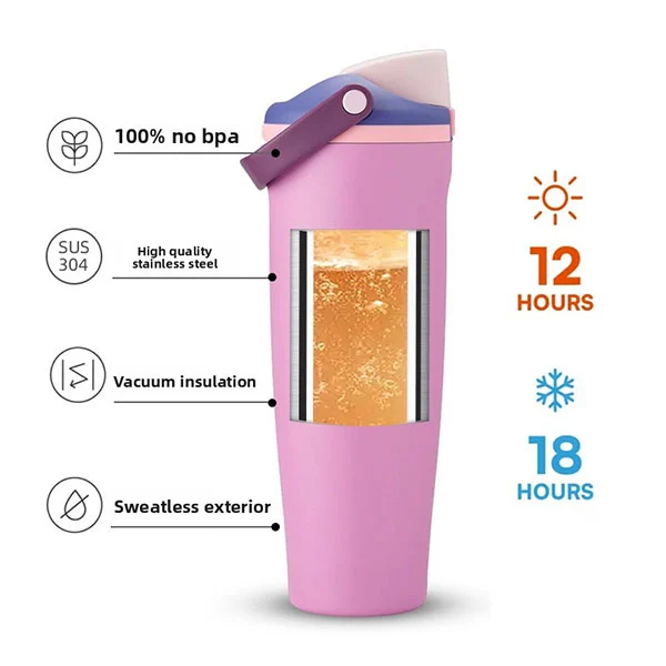 * Stresszmentes ivás-A sapka egyszerű a túlzott részletek nélkül, és bármilyen szögből inni, például egy üvegből vagy bögreből történő ivás. A dupla fallal körülvett rozsdamentes acélból készült pohár, a belső és a külső falak közötti vákuummal, megakadályozza a hőátadást.